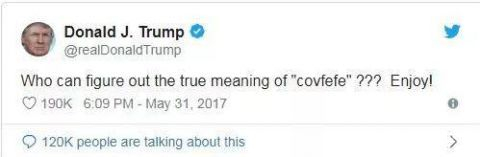 沒有人知道covfefe是拼寫錯誤還是特朗普發明的新詞。