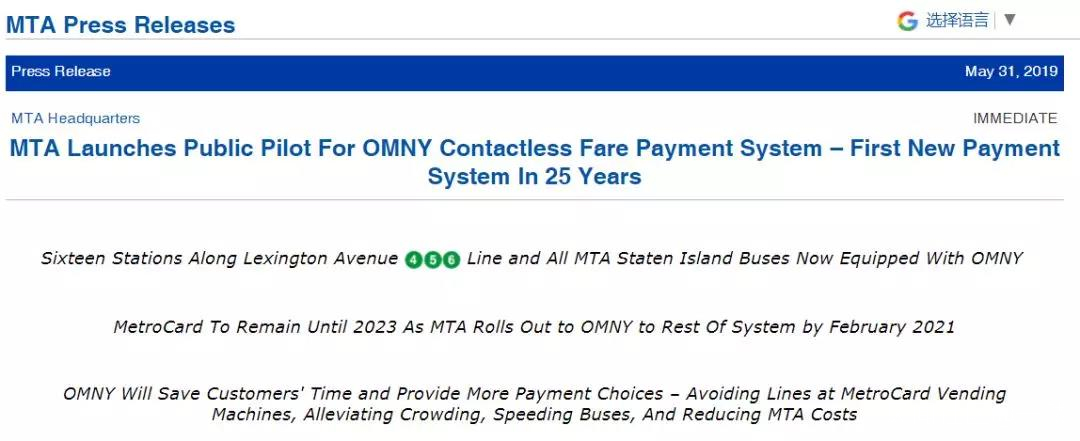 MTA宣佈,新一代無接觸式地鐵卡OMNY Card(One Metro New York)正式試運營!乘客可以使用手機的電子錢包、MTA手機app、銀行卡和OMNY卡感應識別付款。