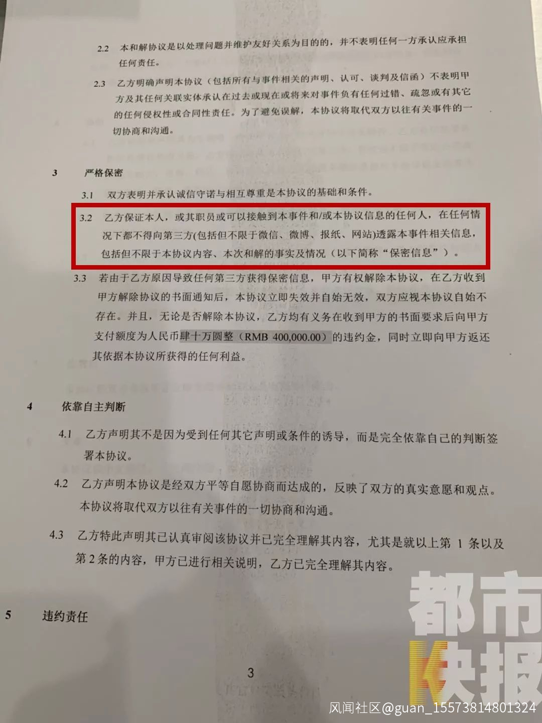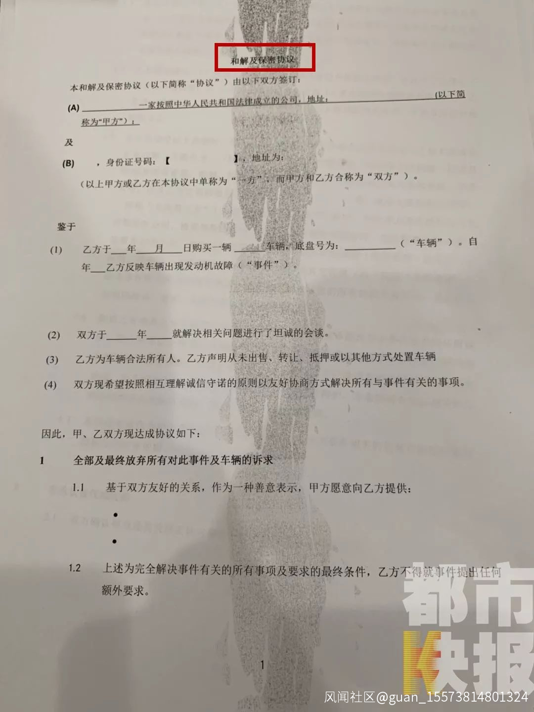保密協議中明確規定了,車主不得將事件所有有關信息透露給任何人,包括髮到網上、發給媒體等等。