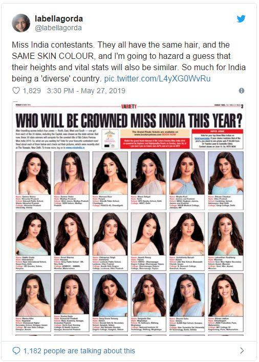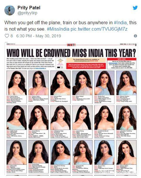 A collage featuring all 30 participants of Miss India 2019 beauty contest has caused a heated debate.