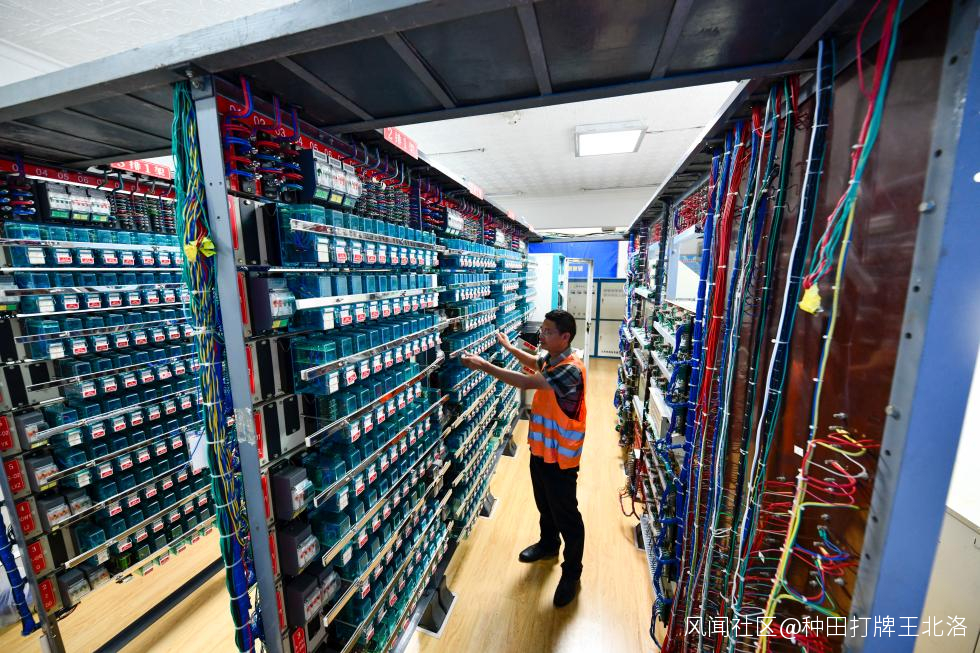 在成渝鐵路柏林站電氣設備室內,重慶電務段的車間主任賴克祿在老式設備架前對鐵路的電氣設施進行檢查和調試(6月12日攝)。新華社記者 劉潺 攝