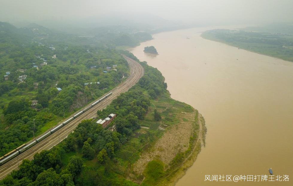 沿長江江岸而建的成渝鐵路(6月11日無人機拍攝)。新華社記者 劉潺 攝