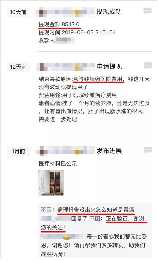 同時可以注意到,在早前就有網友質疑她在父親未被確診為胃癌的情況下,就已經發起籌款是否不妥,這位姑娘卻回覆稱:“正在驗證,謝謝您的關注!”