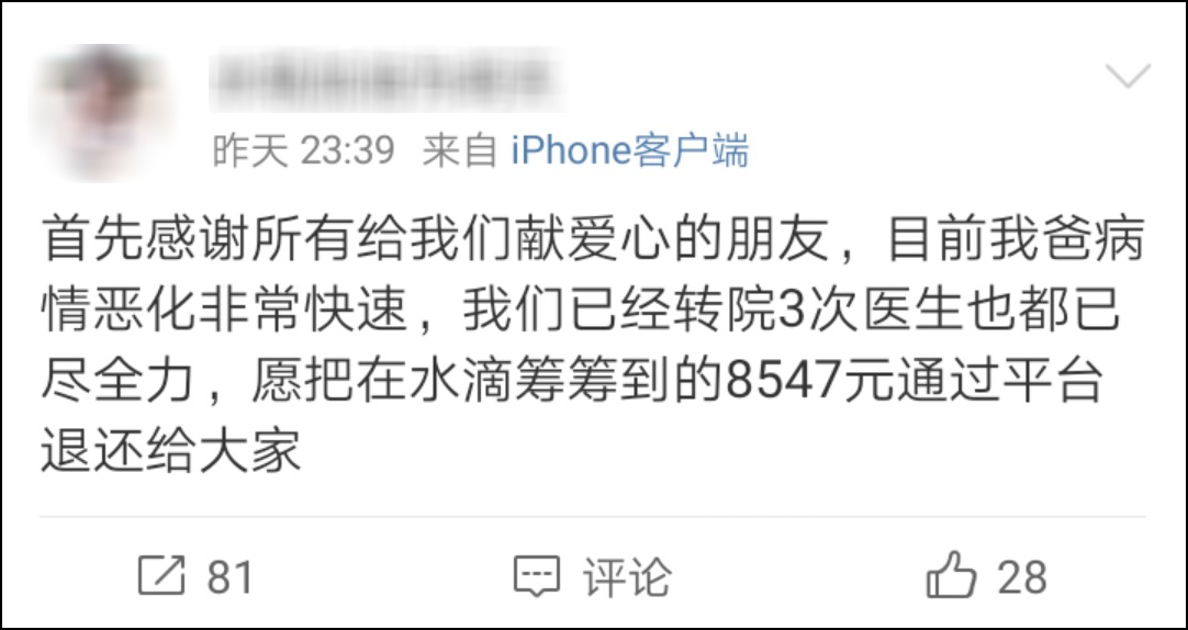 又現惡意眾籌:父親患癌籌款20萬,微博上卻買車買包到處炫富?_風聞