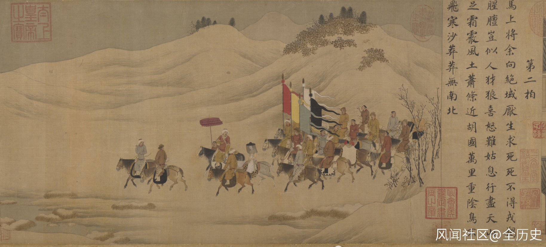 稍不順從,就被大肆辱罵,或者棍棒鞭子無情揮下,更有甚者以揮刀屠殺相威脅。秩序瓦解、朝生暮死,更是極大釋放了男人的獸性,何況是風俗更為粗鄙的匈奴。蔡文姬僅用一句“邊荒與華異,人俗少義理”來概括那段被蹂躪的經歷——有多少不忍回首的難堪,無法細説的奇恥大辱,都和着血和淚,強揉進這十個字裏。