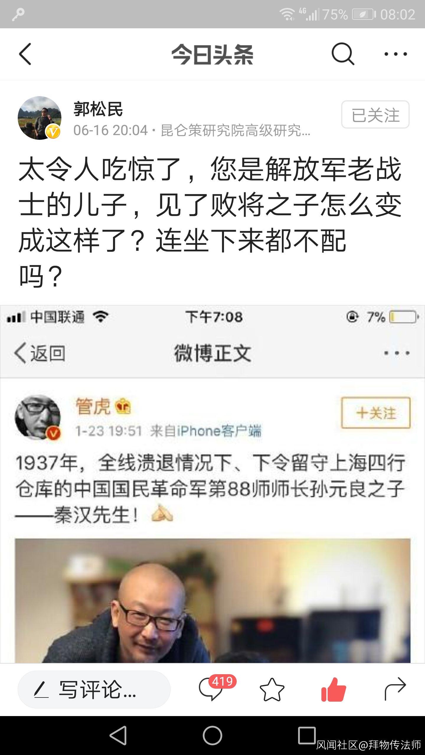 南京保衞戰中孫元良拋棄部隊逃跑,導致八十八師全師崩潰,戰後收容不足千人。而孫元良在躲藏月餘後,於1938年2月過下關渡江抵達武漢。為了規避責任,孫元良同他的“御用記者”曹聚仁合謀,編造出了《孫元良在南京棲霞山打游擊經過》的假新聞材料。不料此舉激起了八十八師倖存官兵的憤怒,以八十八師二六四旅旅長廖齡奇為首的以全體官兵名義電請蔣介石槍斃孫元良,指出他在平時剋扣軍餉,私刻印章假造報銷,一貫過享樂腐化生活,在戰時貪生怕死,在南京抗戰中,沒有接到撤退命令,就擅自離開師部逃到公使館,祈求帝國主義保護,不顧全師官兵生命危險。最後老蔣讓他自行去軍法總監部報到。再然後先是孫元良自己寫了篇《孫元良在棲霞山打游擊的經過》,讓曹聚仁發表在報紙。 然後給88師補發了3個月的軍餉,還是37年10、11、12月的,滿編1.4萬的部隊,到補發軍餉時不過3000人而已,剩下的1.1萬又不知道到哪裏去了! 再給了廖齡奇5萬,花了400找來2個傷兵作偽證,送了錢給軍法官,又走了湯恩伯、陳誠、何應欽的路子。 最後把知道這件事經過的從南京找來的楊小姐、南京自己家裏的花匠、衞士通通滅了口,衞士年僅15歲的兒子來尋親,也被斬草除根。 前前後後花了20萬。才把事情擺平了,1938年5月11日,軍法執行總監部對上級呈出了一個簽呈,經調查清楚後,表明孫元良“安全無罪”。5月14日孫元良關了42天又出來了。孫飛將可是連湯恩伯都不齒的國軍之屑,還有人去巴巴舔?所以管虎沒文化就算了,還要裝知道歷史。露怯就算了,還哭錯墳了