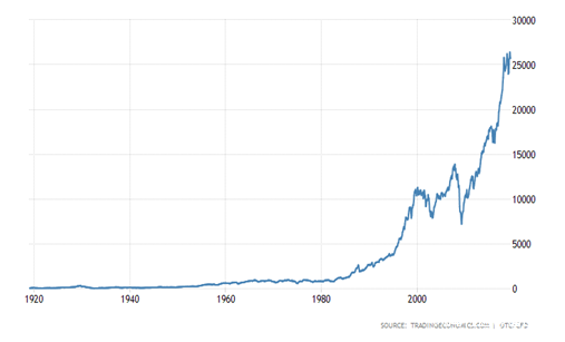 股市是經濟的晴雨表,股指過高同樣預示着美國金融危機不可避免。美國股市曾多次出現大跌情形,數以千萬計的個人投資者和機構投資者(以養老基金、投資公司、保險公司、銀行、各類基金會為主)損失慘重。如1929-1932年道瓊斯指數由386點的歷史高位跌至41點,跌幅接近90%;1972-1974年由1003點跌至578點,跌幅為42.4%;2007-2009年由14198點跌至6800點以下,跌幅超過52%。納斯達克市場自1984年創立後,指數從237點衝高到2000年的5132點,2002年最低點位僅1108點,較前期下跌78.4%,2008年跌幅達到42.5%,此後又開始大幅度上漲。