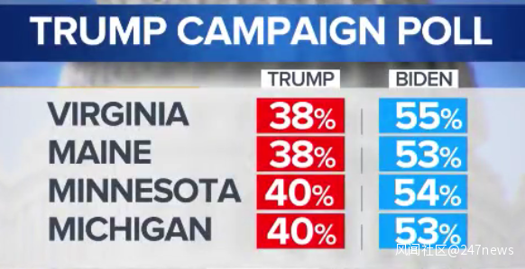 一、支持率真不佳,怪泄密、怪假新聞NBC週日表示從與競選活動有關的人那裏得到一份3月的民調數據,數據顯示特朗普在11個關鍵的州落後於民主黨候選人拜登。隨後NBC和WSJ在6月8日至11日對1000名成年人進行了隨機調查。數據顯示,2020年的總統大選,37%的登記選民表示,他們對投票給特朗普(Trump)感到”熱情或舒服“,而52%的人表示,他們“非常不舒服”。而另外一邊,40%的人對投票給民主黨拜登(Joe Biden)感到”熱情或舒服“,31%的人“非常不舒服”。令特朗普不高興的是那些可靠的共和黨支持州(紅色州)的民調支持率並不好,愛奧華州落後拜登7個百分點、北卡羅萊納落後8個百分點、維吉尼亞落後17個百分點、俄亥俄落後1個百分點、喬治亞落後6個百分點、明尼蘇達落後14個百分點和緬因州落後15個百分點。其中引人注意的是川普在德克薩斯州只領先拜登2個百分點。自1976年以來,民主黨總統候選人從未在德克薩斯州獲勝。被譽為最堅定的紅色州,如今這個最強紅色州卻表現不佳,難怪特朗普氣得要解僱民調機構。