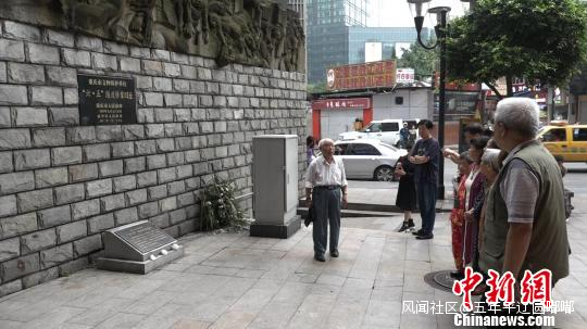 圖為重慶大轟炸民間對日索賠團成員代表在重慶大轟炸“六五大隧道慘案”遺址前舉行壯行儀式。 肖江川 攝