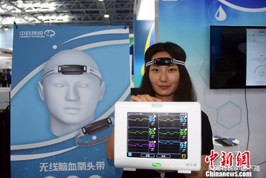 中新社北京6月18日電 (記者 孫自法)正在北京中關村舉行的2019年全國雙創周北京會場上,一款外形並不起眼的穿戴式醫療健康科創產品——無線腦血氧頭帶,吸引不少觀眾前來試戴試測。據悉,該無線腦血氧頭帶及一道參展的無創腦血氧監護儀,均是中國科學院自動化研究所腦網絡組研究中心團隊近20年的科研成果“落地”轉化而“開花結果”。