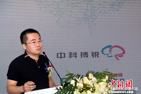 圖為中科院自動化所副研究員、中科搏鋭董事長兼總經理張鑫在研討會上介紹“腦科學技術成果到臨牀醫療器械轉化”情況。中新社記者 孫自法 攝