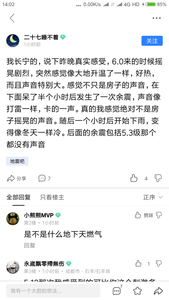 我的感覺是板塊構造地震的理論不成立或者至少在中國不成立,現在應該有一個新的理論出現。宜賓和松原地區,都是天然氣開採的重鎮,今年都發生了連續的大地震和小地震過程,根本是過去的板塊理論無法解釋的。汶川大地震中心的噴出石頭堆滿了整個山谷,疊溪地震中疊溪城居然陷落幾百米,這都是板塊構造理論不能解釋的。板塊擠壓不是地震的成因,板塊擠壓只是地震發生的一個結果而已。而附帶的這個石油天然氣的理論解釋也是有問題地震應該就是石油和天然氣的重要形成原因。