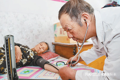 六月七日,在中後河村幸福院,韓四虎在給八十二歲的馬二女量血壓。 新華社記者 劉 磊攝