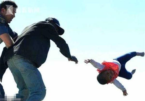 這位狠心父親抓住女兒的腳踝,將她吊在空中。幾秒鐘後,他將小女嬰扔下。好在現場一位警官及時衝上去,將女嬰接住,她沒有受傷。