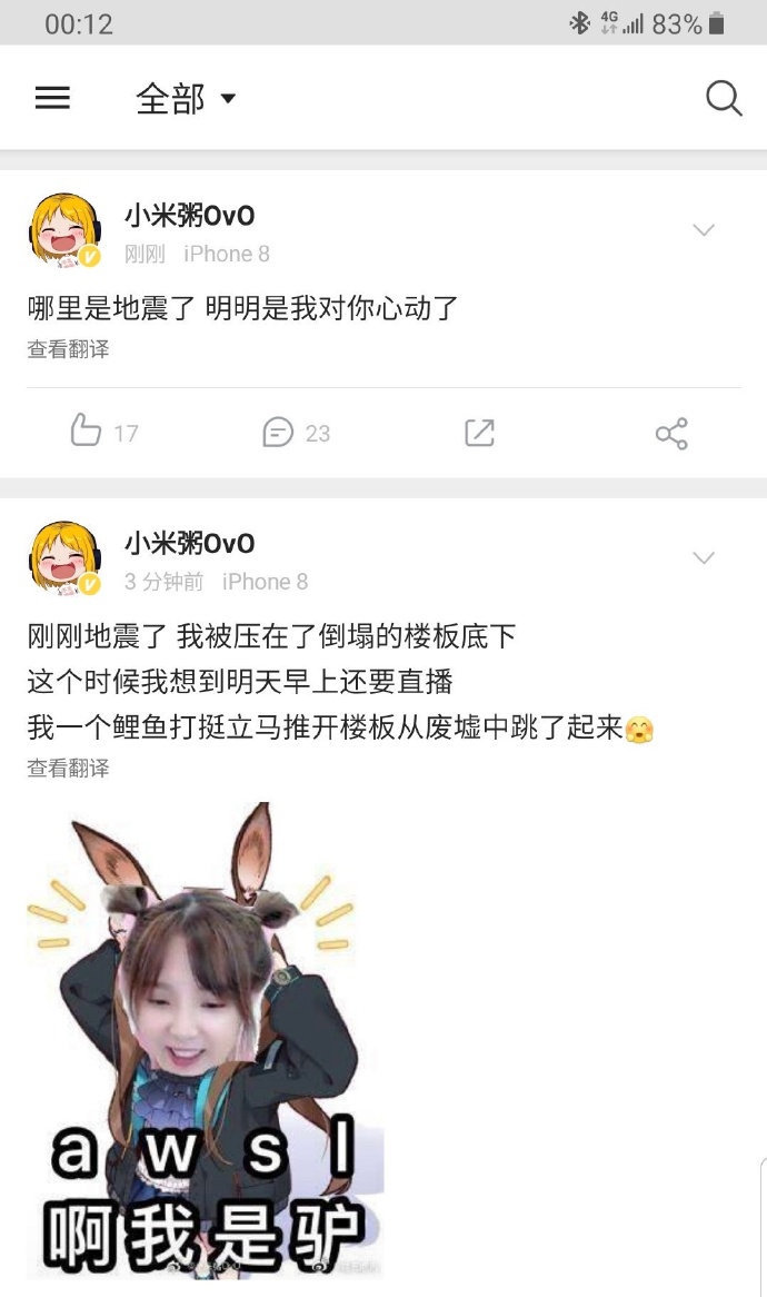 6月17日晚間,主播“小米粥OvO”通過其個人微博,發佈了與四川宜賓地震有關的不當言論,造成惡劣影響。目前,該主播已被封禁、其直播間已被屏蔽、相關影視內容已被下架。