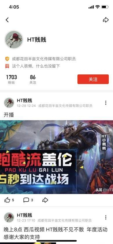 騰訊公司提交的訴訟材料顯示,被訴的遊戲用户許某某,今年25歲,是《英雄聯盟》玩家,遊戲賬號叫“XiguaAAA賤賤”,並在西瓜視頻app上開設賬號“HT賤賤”直播《英雄聯盟》。