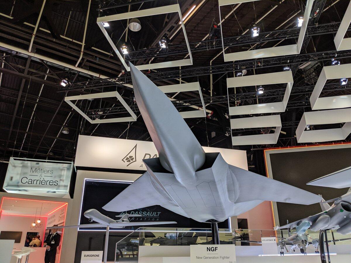 雖然是最大亮點,但是模型總體表現讓人失望:除了看起來像一個無水平尾翼佈局戰機,以及比現有戰機更大,更平以外,FCAS的模型沒有任何值得一提的特徵。從模型中,我們可以看出FCAS採用了DSI進氣道,外傾近70度的垂尾來同時替代水平尾翼和垂直尾翼,該機還擁有隱形彈艙和視野良好的“氣泡座艙蓋”。