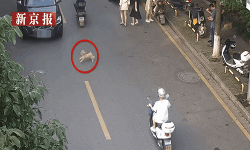 據事發地轄區交警介紹,當時這隻寵物狗的主人汪女士就在邊上,但是她沒有用狗繩拴住它,從而引發愛犬竄上馬路被車碾軋致死。昨天,公安交警部門公佈了這起事故的高清監控視頻,畫面顯示,當日17時50分許,汪女士和其朋友在喜來登大酒店北側道路上邊走邊聊,一條小狗先是在人行道上活蹦亂跳,後來又突然飛快地竄到馬路上,等汪女士轉頭想喊住小狗時,一輛黑色的越野車剛好經過,小狗瞬間已在車子底下……