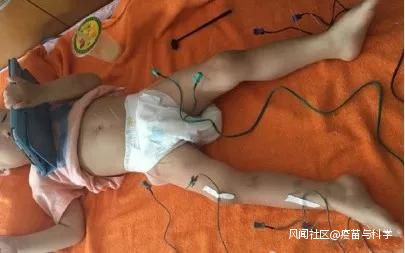 但是,2年以後,變成了這樣的情況,寶寶趴在牀上,接受着電針灸的治療