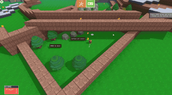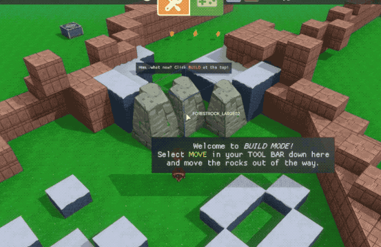 Game Builder 一打開,就是個萌萌的機器人,畫風還挺像 Minecraft ~