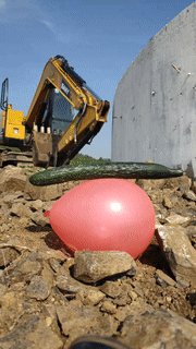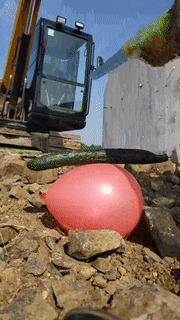 氣球上切黃瓜、雞蛋上點打火機...我信了玩挖掘機能玩出奇蹟!_風聞