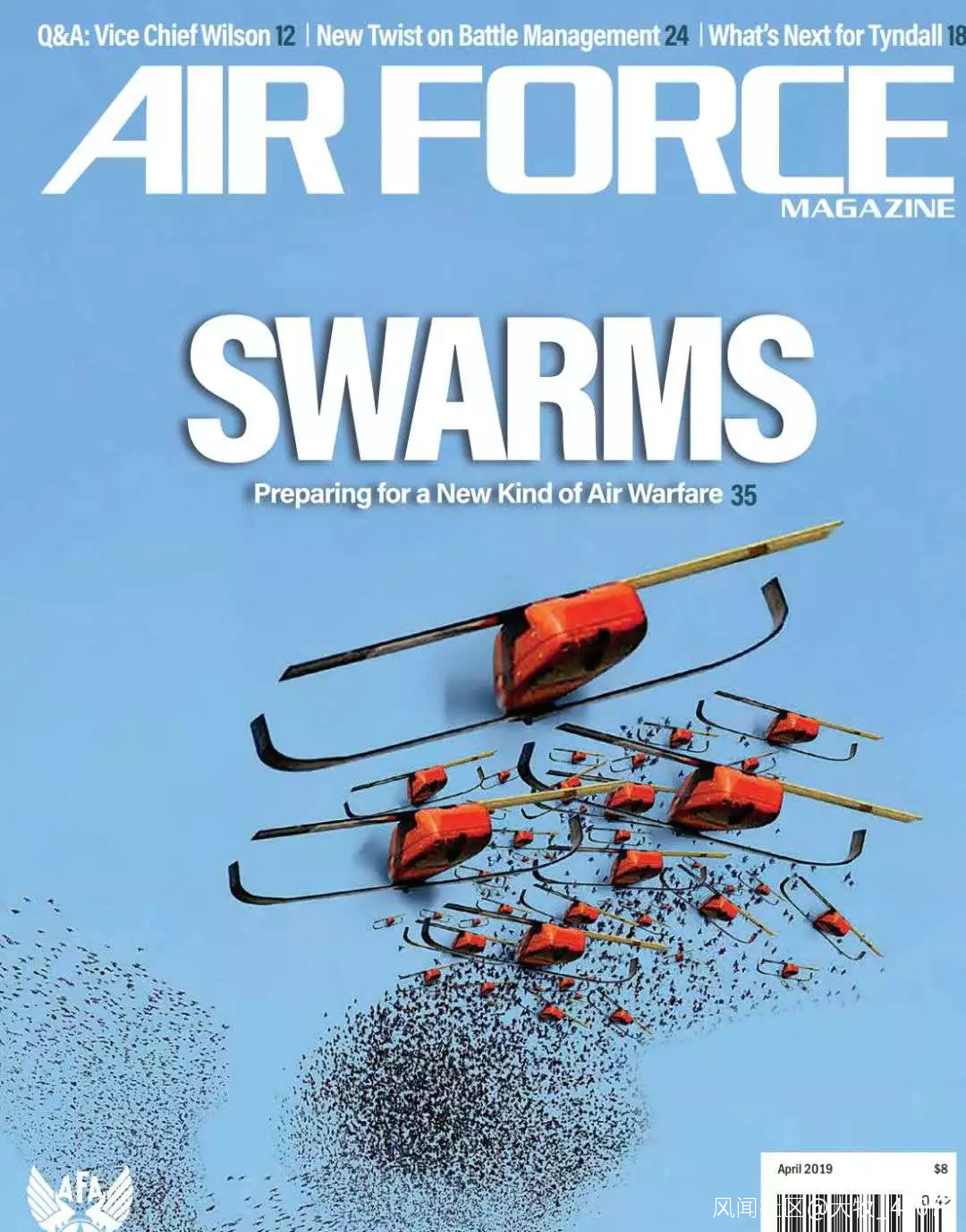 一篇題為《蜂羣:備戰未來空戰》的文章登上了4月號美國《空軍》雜誌封面。美空軍負責採辦、技術和後勤的助理部長威爾•羅珀對無人機蜂羣的發展充滿信心:“我認為這就是未來戰爭的樣子。”