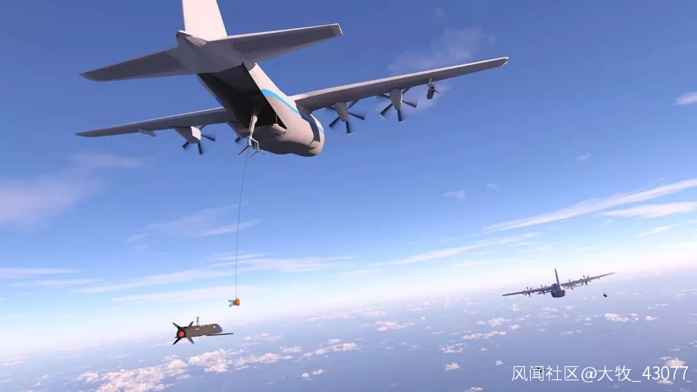 在低對抗環境下,無人機蜂羣由C-130運輸機投送,除執行情報、偵察、監視任務外,還能配合中空長航時無人機實施動能打擊和為AC-130空中炮艇提供目標指示;