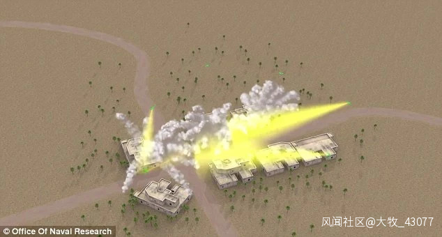 2035年,美軍提出利用高超音速導彈攻擊敵高能激光防禦系統,並首先由4架運輸機投放200架高亞音速小型無人機蜂羣,抵近實施偵察和干擾。由於探測和火力通道被無人機蜂羣飽和,敵激光防禦系統未能及時發現高超聲速空地導彈,使其很容易被摧毀。