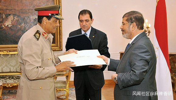2012年8月,當選總統僅三個月的穆爾西先後要求國防部長、陸軍參謀長、海軍指揮官和空軍指揮官等高級將領辭職。現任埃及總統、時年僅57歲的塞西接任國防部長。
