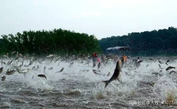 這些亞洲鯉魚越長越多,在美國遍地開花,游出養殖場,奔向五大湖。而且這些魚兒沒天敵,啥都吃,長得巨大,把土著魚都快擠兑得沒吃的了。。