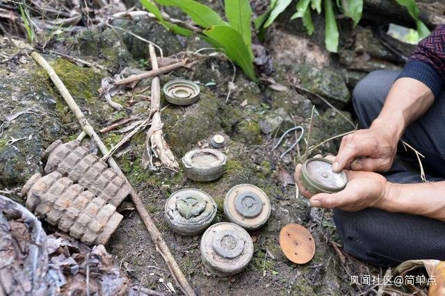 在部隊手裏大動干戈的排雷,對於王開學和王清明來説,只需要一根叉頭鐵絲和一柄鐮刀,加上膽大和一絲不苟的細心。我們跟着兩人來到樹着骷髏牌子的荒地,雷區中開闢出一條隱約小徑,兩旁地裏已經打過除草劑,隱現着綠色的塑膠雷,有的浮在地面,有的埋於土中,不動聲色卻含有死亡的威脅。王開學蹲在小徑盡頭,用鐮刀輕輕刨開泥土,拿起半埋土中的地雷,防止手上壓力超過五公斤,也就是一隻雞腳踩的重量,拿鐵絲撬開外殼,拆下雷管。確認坑中沒有剩餘的地雷後,王開學雙腳蹲入坑中,繼續下一步的排雷。這樣的動作,王開學重複了超過十萬次,每畝地需要排雷一千餘顆。