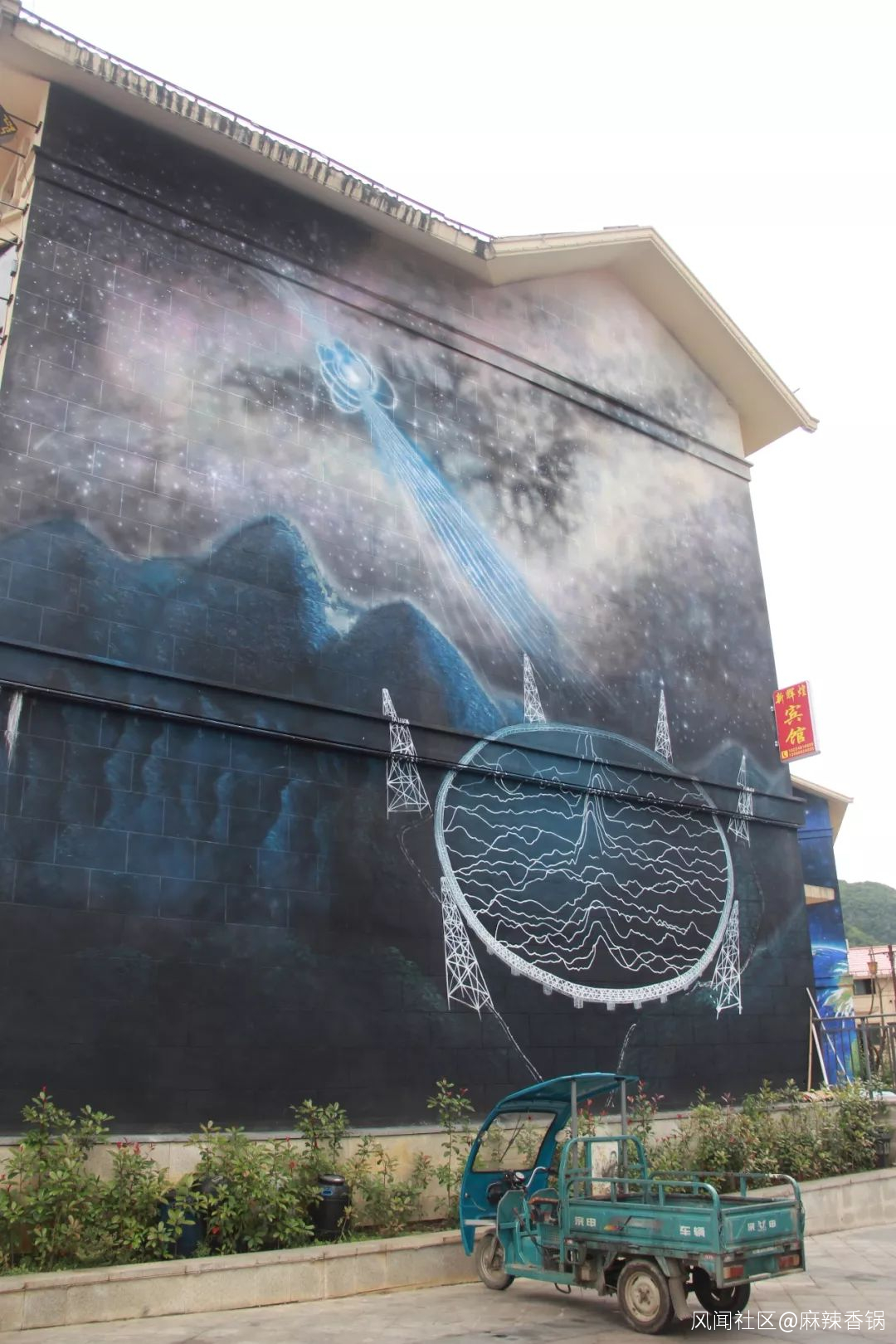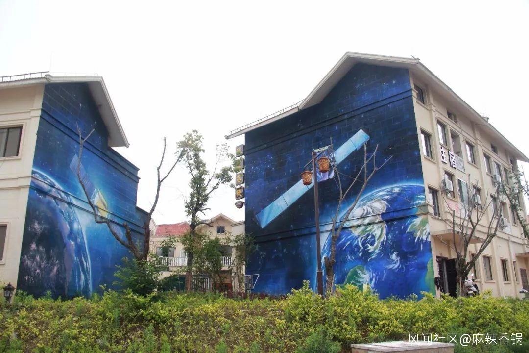 天文小鎮星際家園,朝街的牆面被畫上了天文插畫 攝影:魏宇心