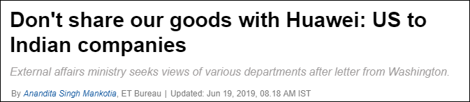 美國政府與印度的最新的溝通主要與最近禁止使用的華為及其子公司的名單有關。其中包括在中國註冊的35家公司,以及華為斯里蘭卡、華為巴基斯坦和華為香港等子公司。