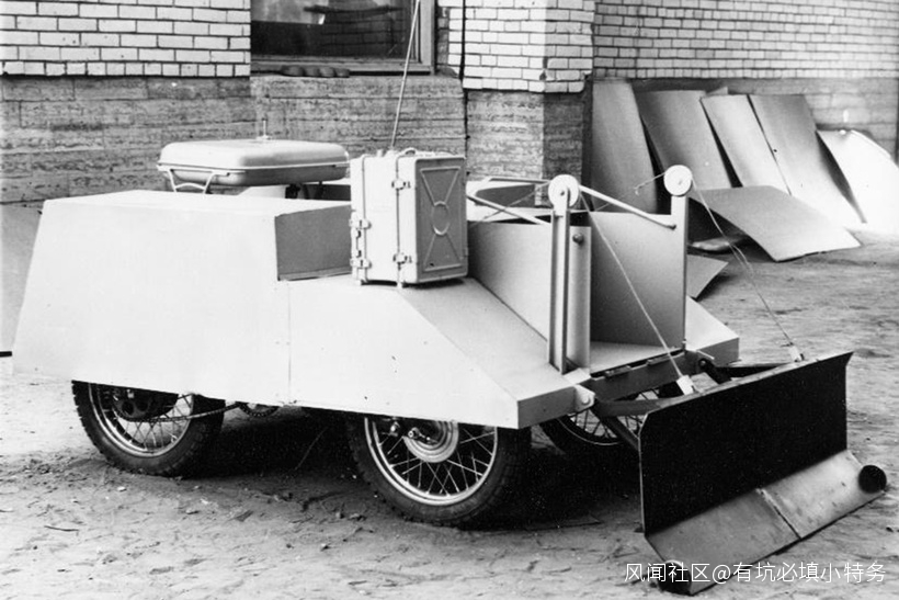 ТР-А1機器人--推土機:ТР-А1是第一種帶有懸掛工作器具(推土機刮刀和料斗外形)的機器人。機器人裝有搜索用電視攝像機、無線電台((Р-407型)、長度150米的電纜、帶二次電源的兩個蓄電池(СЦ-300型)、控制部件,配有便攜式控制站。機器人重600公斤,載貨量200公斤,行程儲備--12公里。