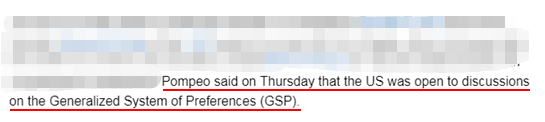 值得玩味的是,《經濟時報》在文章中特別指出,蓬佩奧6月13日時表示,美國對普惠制持開放態度。