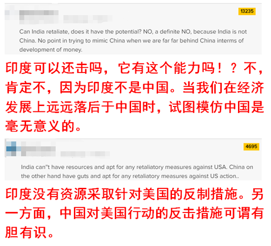 但更多網友則認為,之所以不怕美國加徵關税,是因為印度還有與中國以及世界其他國家貿易合作的自由。