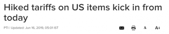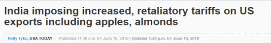 文章指出,印度6月15日決定對包括蘋果、杏仁以及核桃在內的28種美國產品徵收更高的關税——此舉恰發生於特朗普政府6月初取消印度普惠制受惠國待遇之後不久。