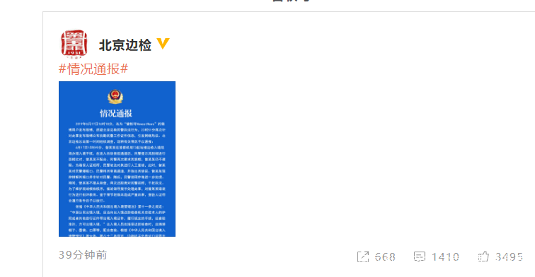 北京邊檢回應