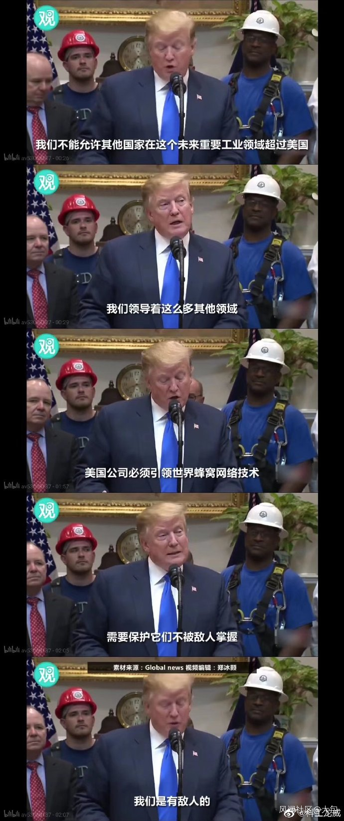 按照工信部官員的説法,中國預計5G投資達1.2萬億元,大約為4G的1.5倍,可見美國給出的計劃也是極富有野心的。特朗普説“5G競賽是一場美國必須要贏的比賽”的那段視頻,很多人可能印象深刻,特朗普高呼美國公司必須引領世界無線通信技術,要保護這些技術不被敵人掌握,並稱“我們是有敵人的”。中國學者汪濤就指出,視頻中特朗普身後站的,卻不是代表美國無線通信尖端技術的企業大佬,而是帶着工作頭盔的藍領工人。
