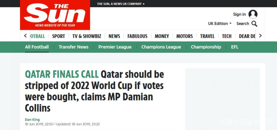 此外,《太陽報》還提到,由於國際足聯舉行秘密會議取代卡塔爾,英格蘭的球迷們正夢想着英格蘭能代替卡塔爾,獲得舉辦2022年世界盃的資格。
