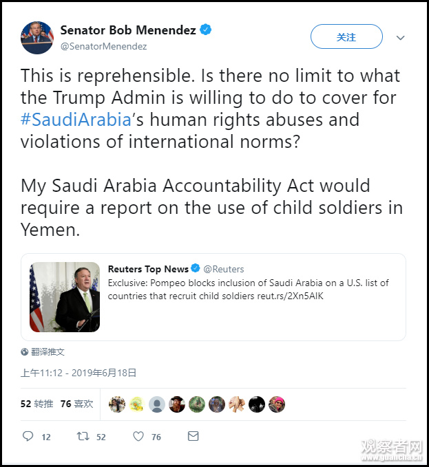 蓬佩奧拒絕將沙特加入“使用娃娃兵國”制裁清單_風聞