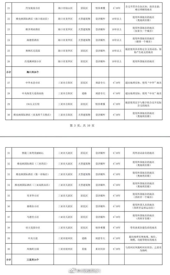 日前,海南省民政廳發佈《關於需清理整治不規範地名清單的公示》,不規範地名84個,其中,海口共有26個、三亞14個。