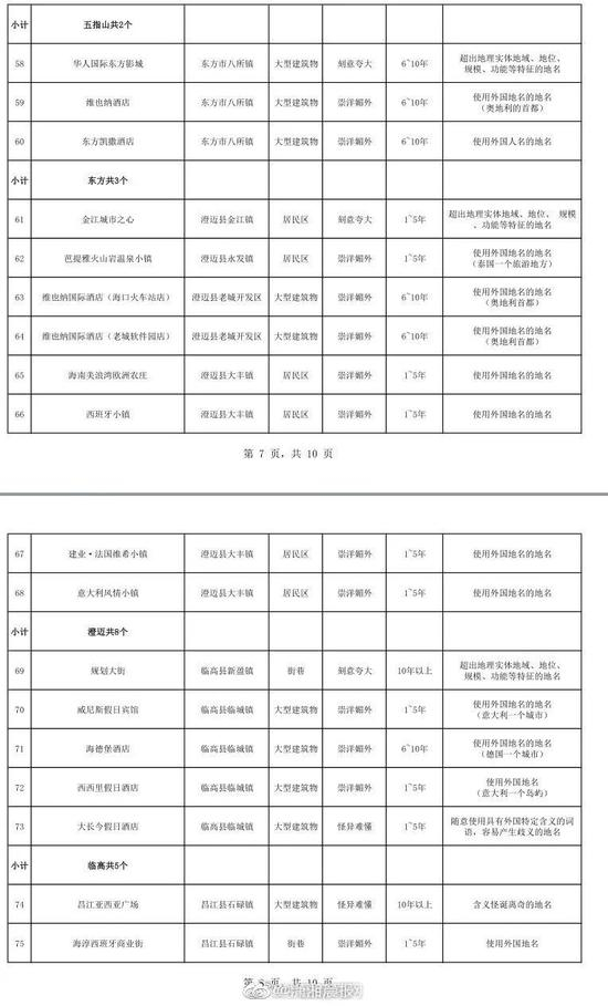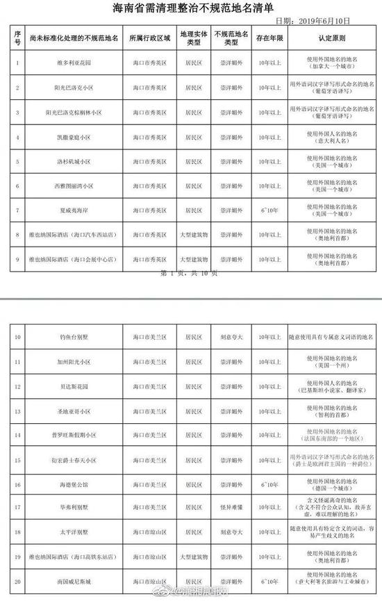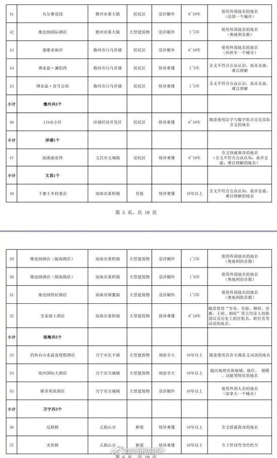 這也是繼廣州、西安等地後,又一地方發佈“整治不規範地名清單”,其中海南15個維也納酒店門店名稱因位列其中而引發異議。