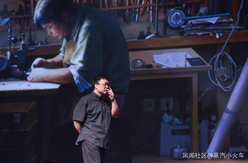 T1發佈會進一步將這種激昂情緒推高。結尾處,大屏幕上打出「我不是為了輸贏,我就是認真」的文字。配圖中羅永浩化身為一名神情專注地打磨物件的工匠,桌前的窗户透入一道光束。