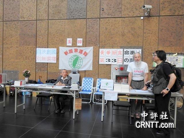 前“國策顧問”黃華在台北火車站大廳設立絕食據點,希望催生“台灣共和國”。(中評社 黃筱筠攝)