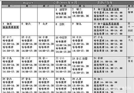 是的,一年一度的“曬娃的暑假日程表”又上演了。
