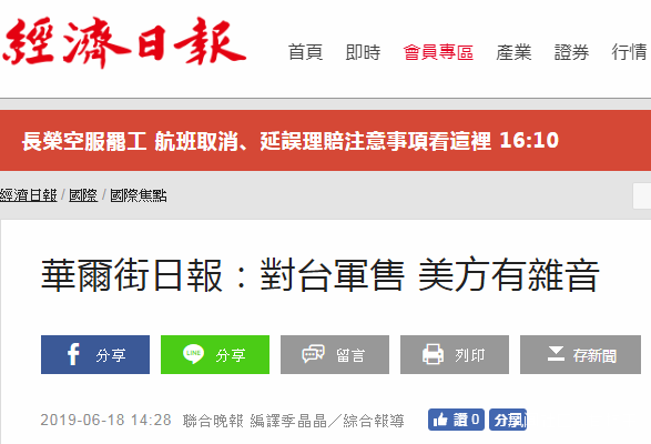 美國《華爾街日報》網站6月17日刊出一篇題為《特朗普政府就對台軍售一事有分歧》的報道。