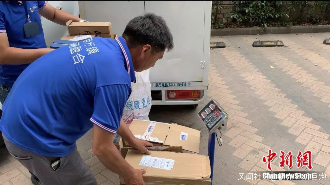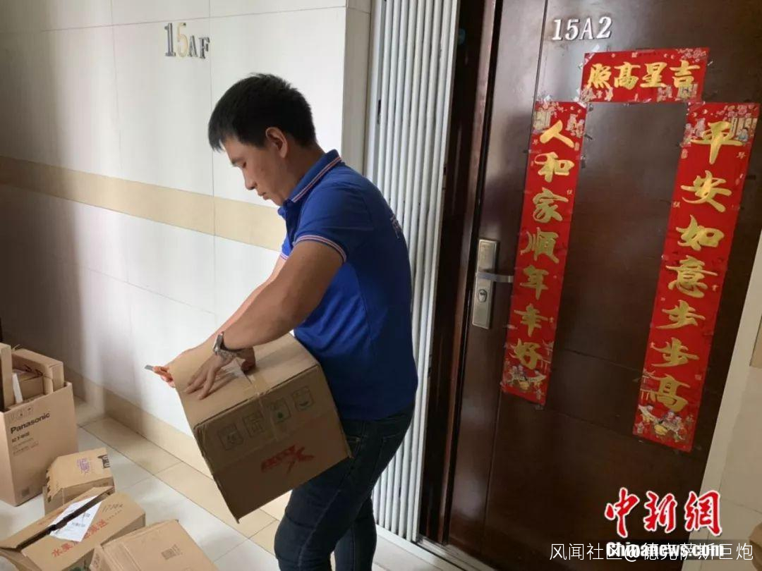 陳阿姨早已將紙箱等物品放置在了門口,李明哲和同事邊處理紙箱邊和阿姨聊起天。