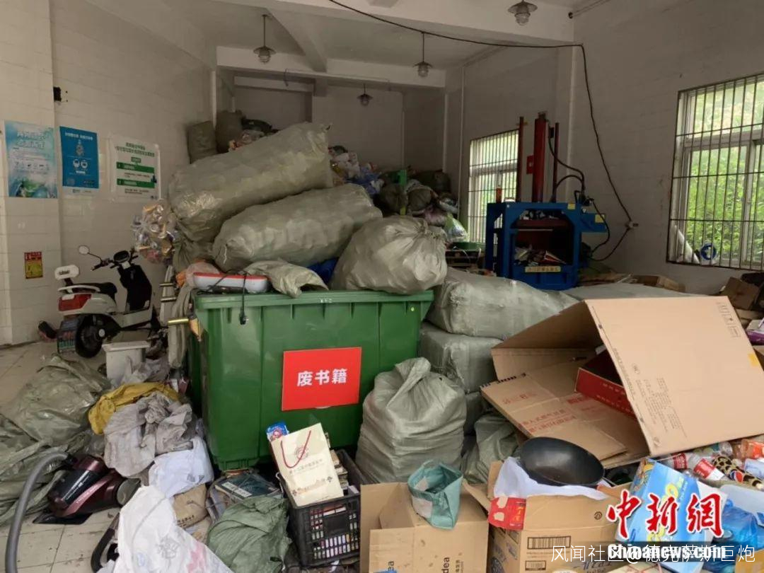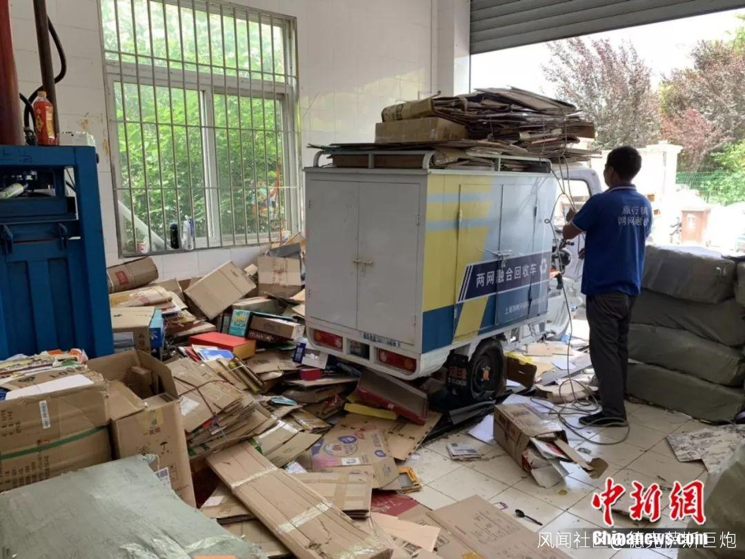 李明哲的站點一天大概要接收一噸左右的垃圾,除了上門回收,他和同事每天還要負責將這一噸的垃圾再次分類。