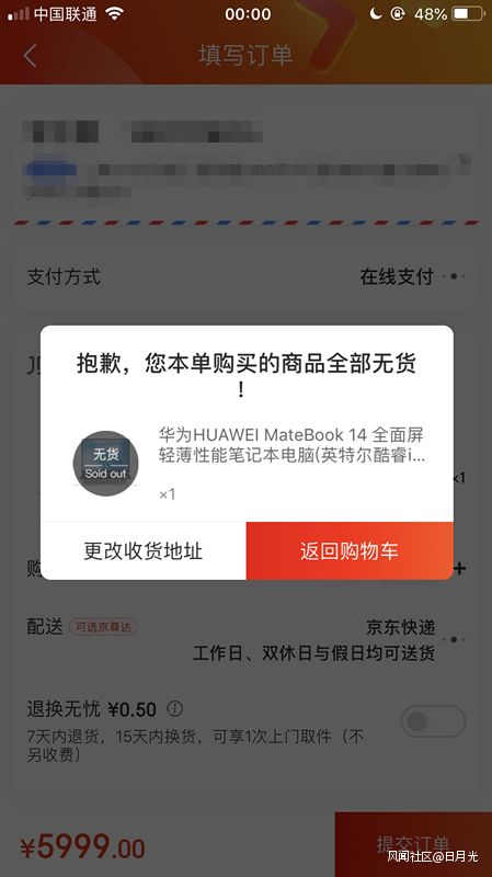 吉時一到,不到10秒鐘,還沒有想好電腦是寄到公司還是家裏,系統就已經提示全部無貨!